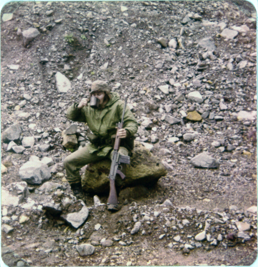 Date1976Reference NumberPhoto 12-660DescriptionSoldier drinking from tin mug amidst scree. Noted with file: 'Kaimai. 1976.FormatPrintSource of AcquisitionThe 6th Battalion (Hauraki) Regimental Association Inc. History Room Curator, Tony Fraser.