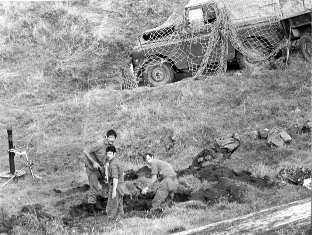 Date02 April 1981Reference NumberPhoto 12-735DescriptionThree soldiers digging, jeep camouflaged in the background. Stamped on reverse '2 April 1981'. Soldiers identified with file as 'UNK. P. Reuben and E. Clapp'. FormatPrintSource of AcquisitionThe 6th Battalion (Hauraki) Regimental Association Inc. History Room Curator, Tony Fraser.