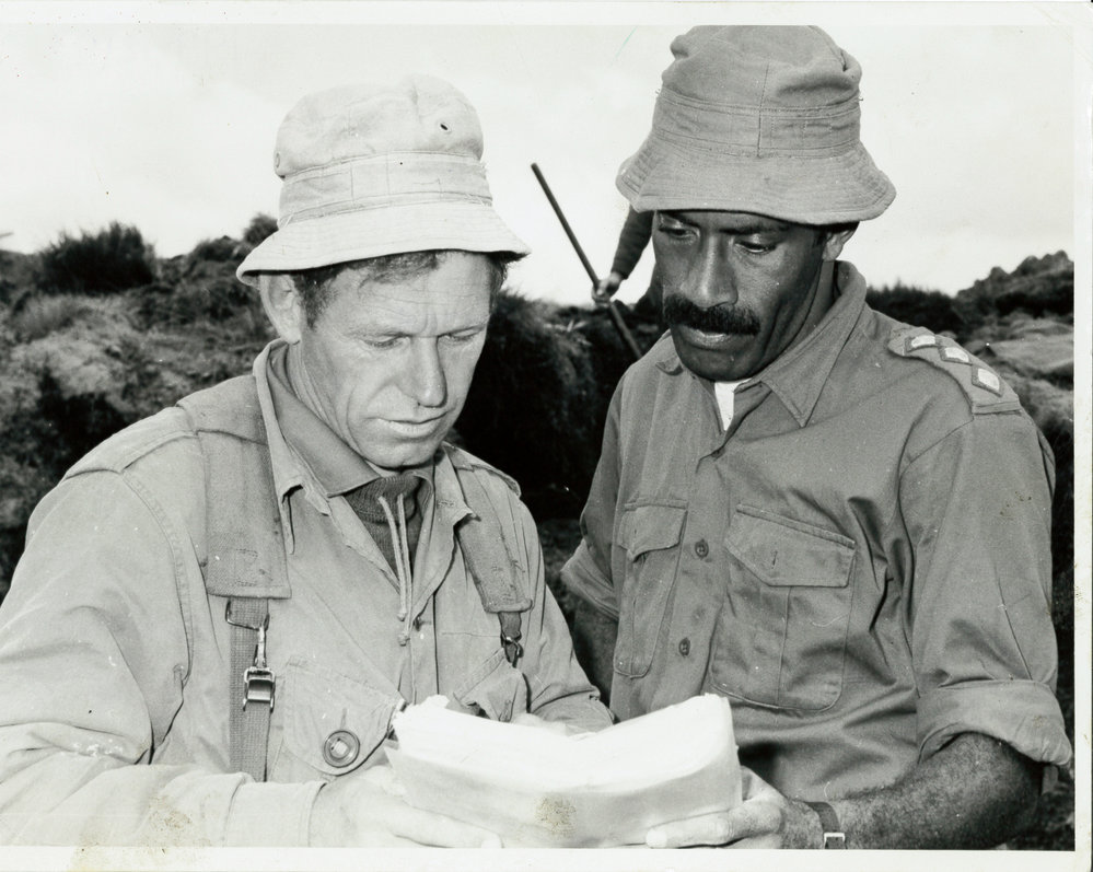 Date1976Reference NumberPhoto 12-759DescriptionKiwi and Fijian soldier studying a map. Handwritten on reverse 'Lt Col Fostor - CO, Capt Ngalala F.M.F. A. Camp 1976'. FormatPrintSource of AcquisitionThe 6th Battalion (Hauraki) Regimental Association Inc. History Room Curator, Tony Fraser.