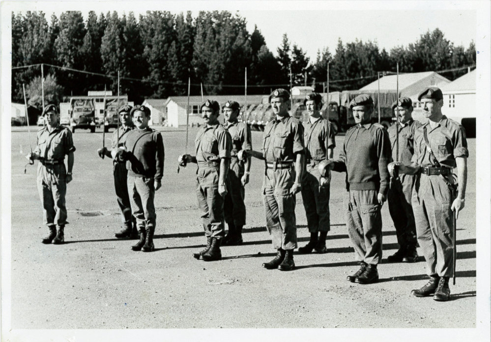 Date1977Reference NumberPhoto 12-766DescriptionOfficers with swords. Noted with file 'Officers of 6 Hau revise the sword drill for the Charter Parade 1977'.FormatPrintSource of AcquisitionThe 6th Battalion (Hauraki) Regimental Association Inc. History Room Curator, Tony Fraser.