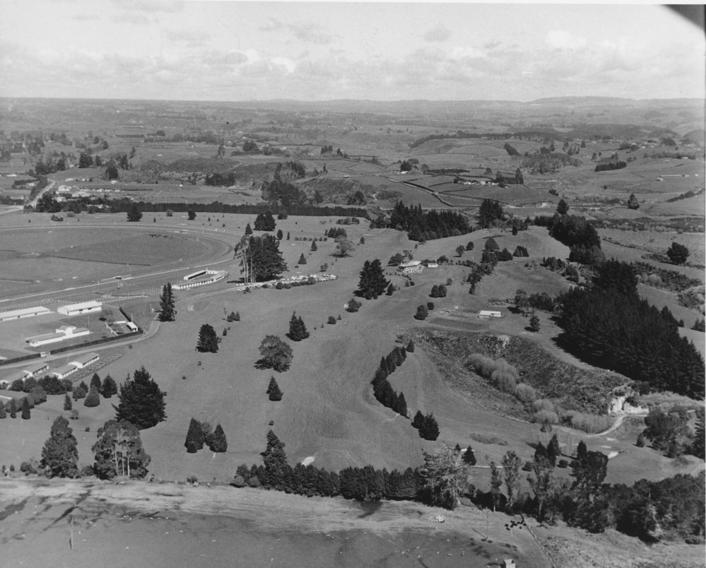 Datec. 1962Reference NumberPhoto 00-183DescriptionGreerton. Racecourse and golf course c. 1962. From Ams 251 (Papers of Bert Goulding).FormatPrintPhysical Descriptionblack and white printPhotographer/CreatorCarters Photo Service Tauranga