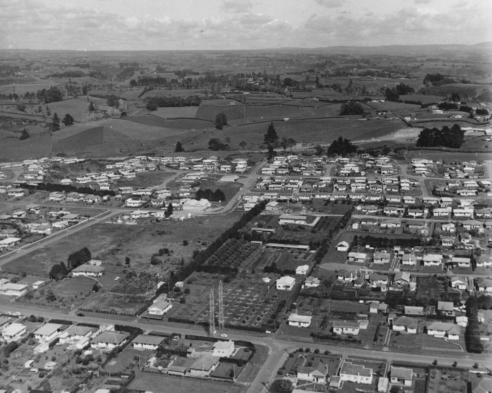 Datec. 1962Reference NumberPhoto 00-186DescriptionGreerton. Pooles Road and bus depot c. 1962. From Ams 251 (Papers of Bert Goulding).FormatPrintPhysical Descriptionblack and white printPhotographer/CreatorCarters Photo Service Tauranga