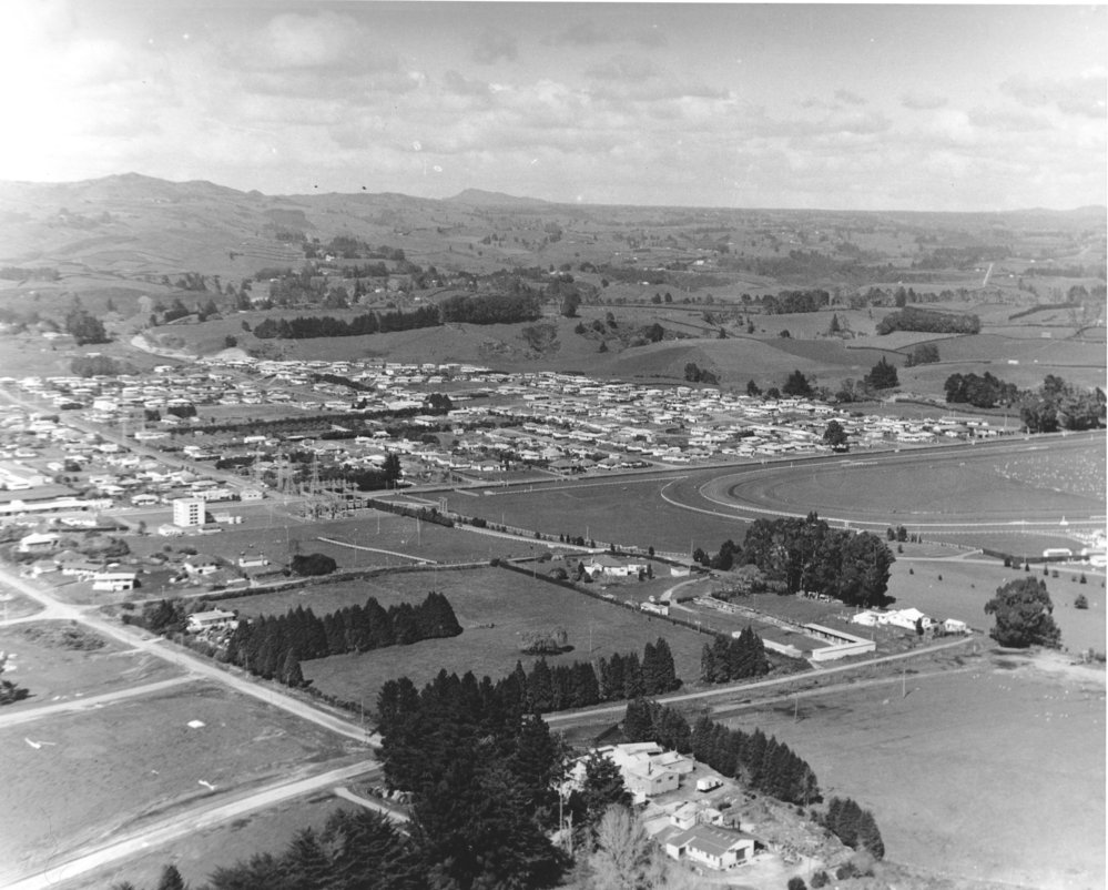 Greerton racecourse aerial photo (Ams 251) (c. 1962). Pae Korokī, accessed 01/04/2026, https://paekoroki.tauranga.govt.nz/nodes/view/27342