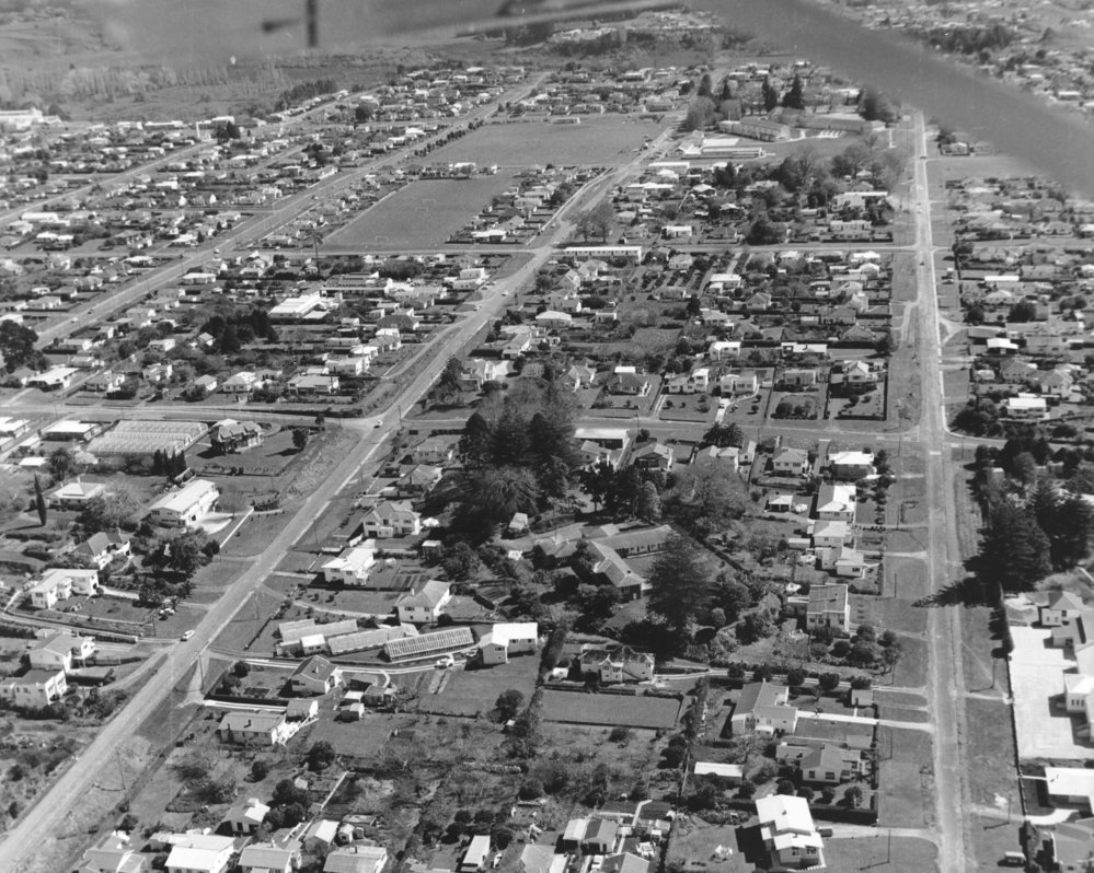 Datec. 1962Reference NumberPhoto 00-216DescriptionAerial view of Tauranga South showing Norfolk Hospital (centre) 1962. From Ams 251 (Papers of Bert Goulding).FormatPrintPhysical Descriptionblack and white printPhotographer/CreatorCarters Photo Service Tauranga