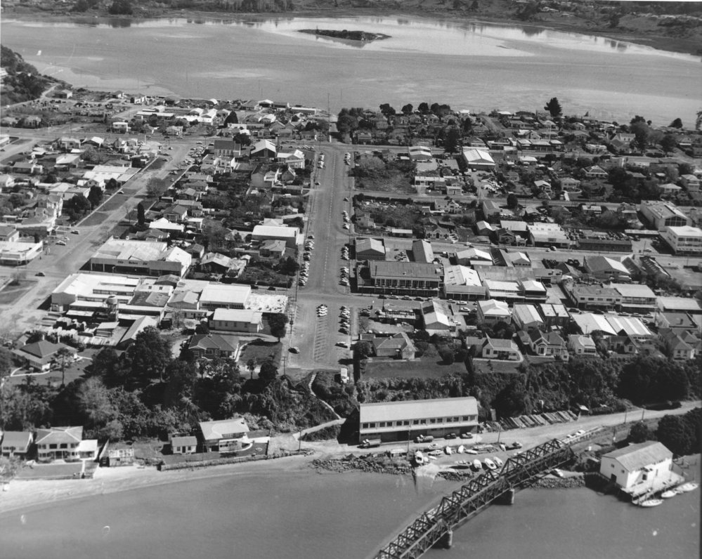 Datec. 1962Reference NumberPhoto 00-219DescriptionAerial view looking west down Elizabeth Street, Tauranga. c. 1962. Shows Yacht Club. From Ams 251 (Papers of Bert Goulding).FormatPrintPhysical Descriptionblack and white printPhotographer/CreatorCarters Photo Service Tauranga