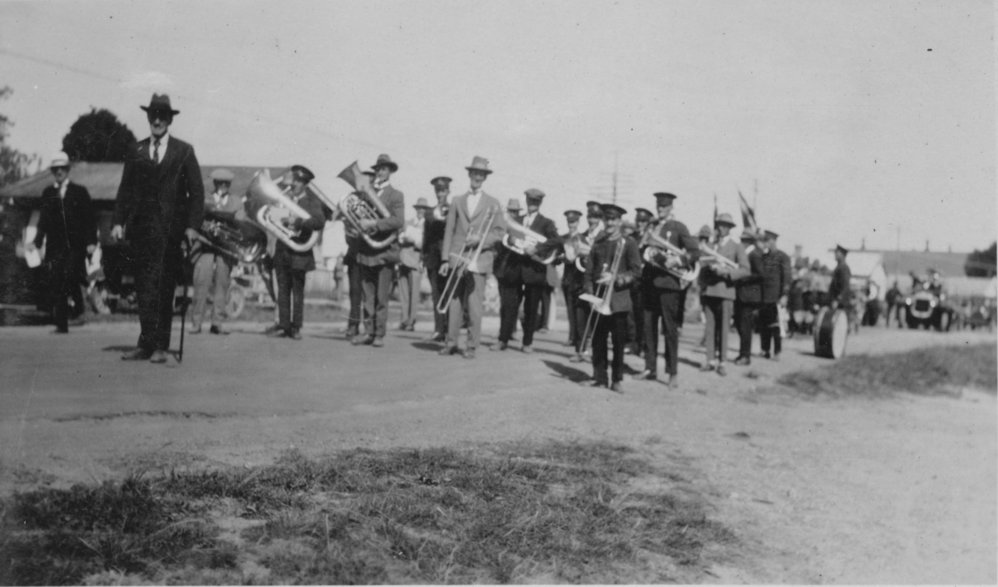 Date1920Reference NumberPhoto 00-412DescriptionBand playing at the opening of the railway, Tauranga, probably 1928.FormatPrintPhysical Descriptionblack and white print
