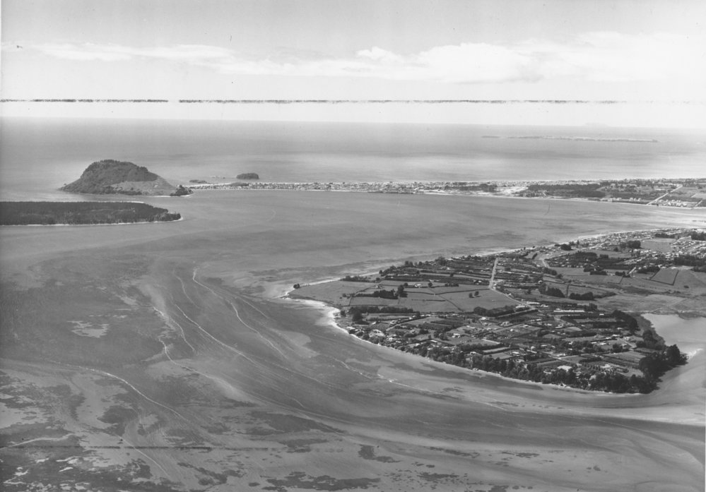 Date17 March 1960Reference NumberPhoto 00-434DescriptionAerial view of Matua peninsula, Ōtūmoetai, with Mauao and Mount Maunganui in the backgroundWhites Aviation 52741 (473i) 17 March 1960.FormatPrintPhysical Descriptionblack and white printPhotographer/CreatorWhites Aviation Limited