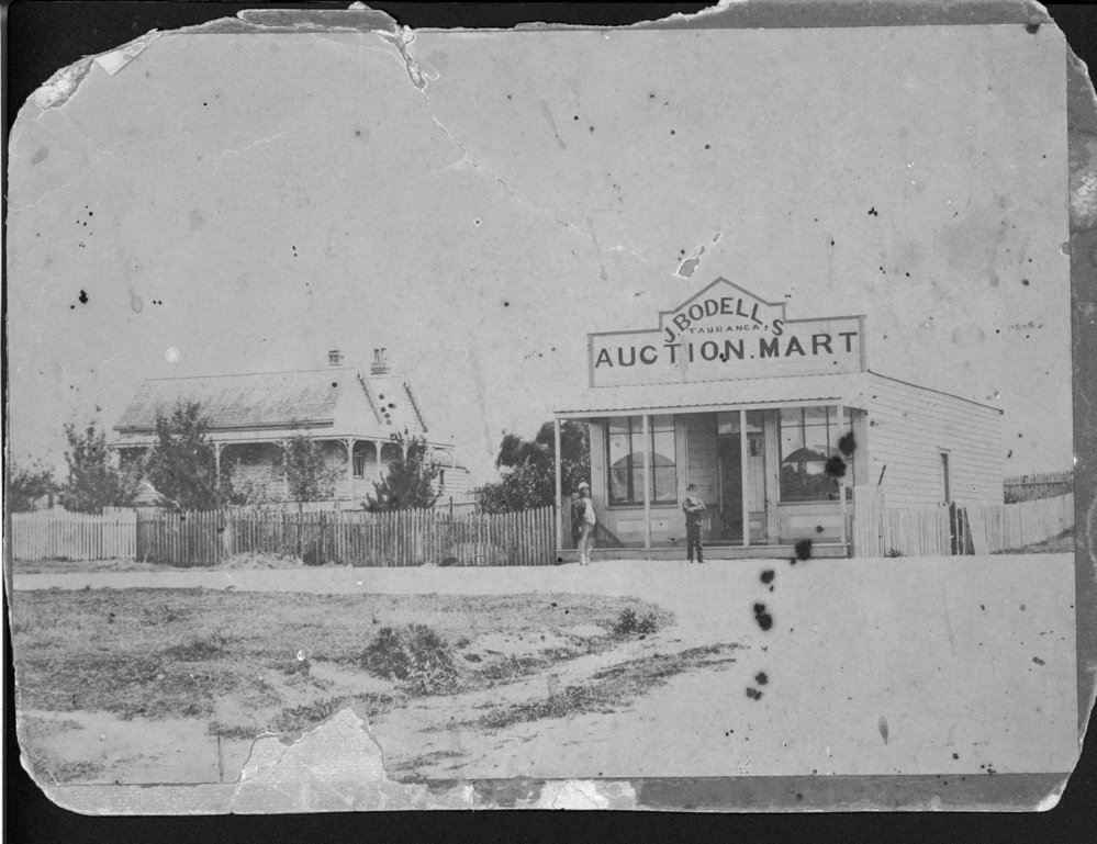 Datec. 1880 to c.1890Reference NumberPhoto 00-464DescriptionJames Bodell's Auction Mart on Cameron Road, Tauranga c. 1880s. Next door is Bradgate Villa. later converted to St Annes Hotel, with an extra storey added. The shop was moved to Willow Street, where it was Maurice Munro's shop, Munro Motors.FormatPrintPhysical Descriptionblack and white print