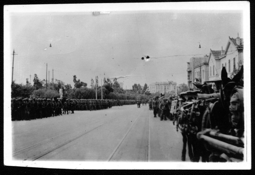 Date1939-1945Reference NumberPhoto 14-0631DescriptionScan of photograph given by German prisoners of war in Africa after the fall of Tunis. Handwritten on reverse "Jerry troops in Athens". FormatPrintSource of AcquisitionCheryl White (niece to Ian Lowman)