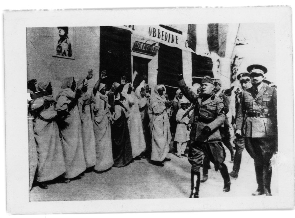 Reference NumberPhoto 15-098DescriptionMussolini parades through Tripoli. Scanned photograph originally belonging to James William Pratt (1921-1998) of the R. A. F. Handwritten on reverse "Mussolina(sic) in Tripoli". FormatPrintSource of AcquisitionPeter Pratt (Brother to James Pratt)