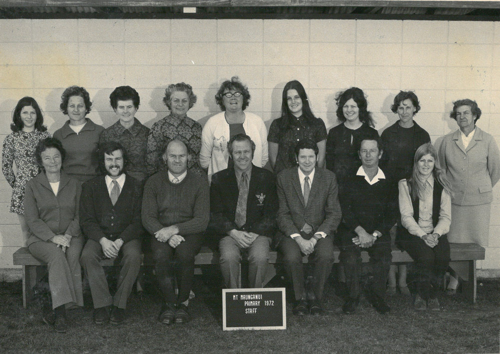 Date1972Reference NumberPhoto 13-827DescriptionMount Maunganui Primary School staff 1972. From images collected during centenary celebrations 2013. FormatPrint