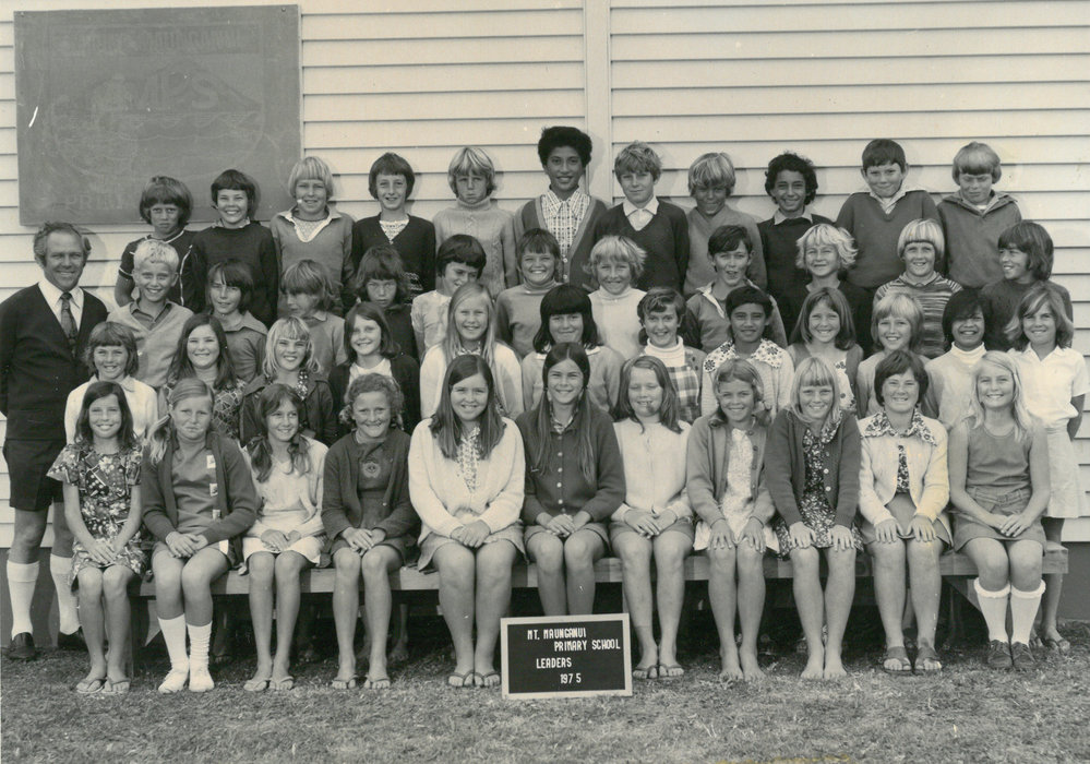 Date1975Reference NumberPhoto 13-841DescriptionMount Maunganui Primary School Leaders 1975. From images collected during centenary celebrations 2013. FormatPrint