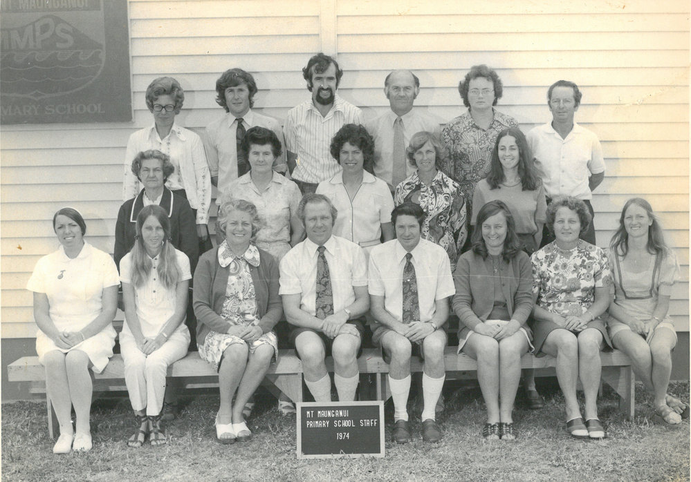 Date1974Reference NumberPhoto 13-866DescriptionMount Maunganui Primary School Staff 1974. From images collected during centenary celebrations 2013. Row 3: Jenny Griggs – Pat Keenan – Evan Baxter – eorge Gray – Avis Anderson – Bob Hart Row 2: Joan Norton – Joan Quinlan – Nancye Gray – Les Davies – Mary Chamberlain Row 1 Karen Lloyd – Justine Neal – Vad Neilson – Keith Wilson – Ron Dickey – Les Howat – Barbara Wilson – L MacDonald FormatPrint