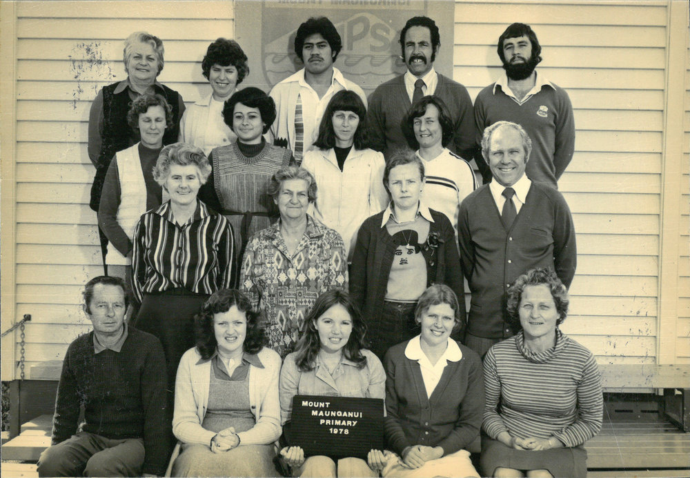 Date1978Reference NumberPhoto 13-984DescriptionMount Maunganui Primary School staff 1978. From images collected during centenary celebrations 2013. FormatPrint