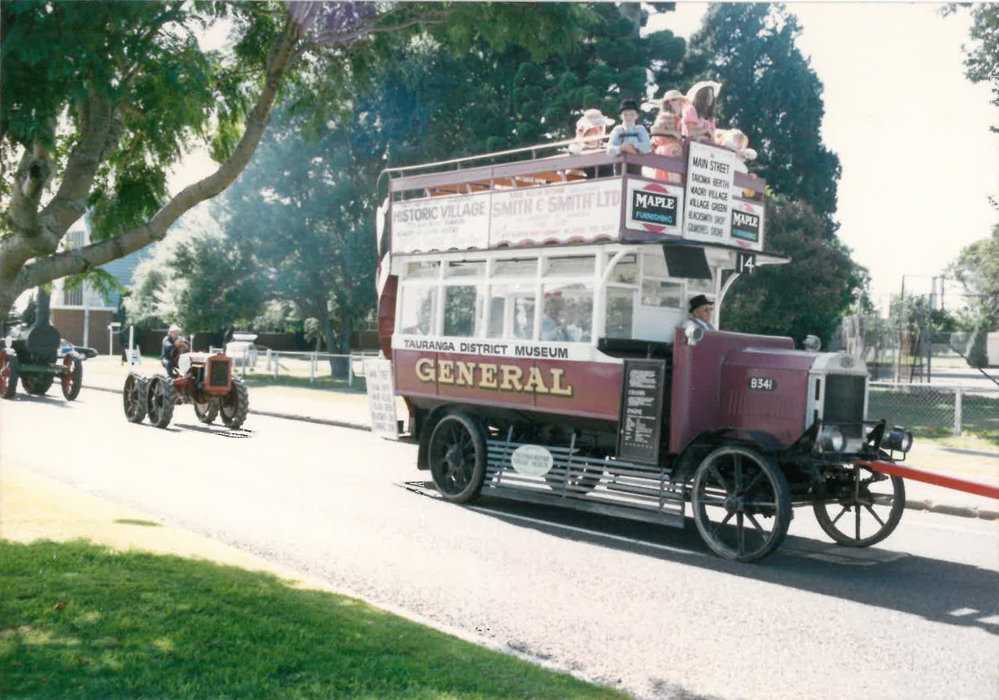 Historic Village bus in vehicle parade c early-1990s (1990s). Pae Korokī, accessed 25/03/2026, https://paekoroki.tauranga.govt.nz/nodes/view/28835