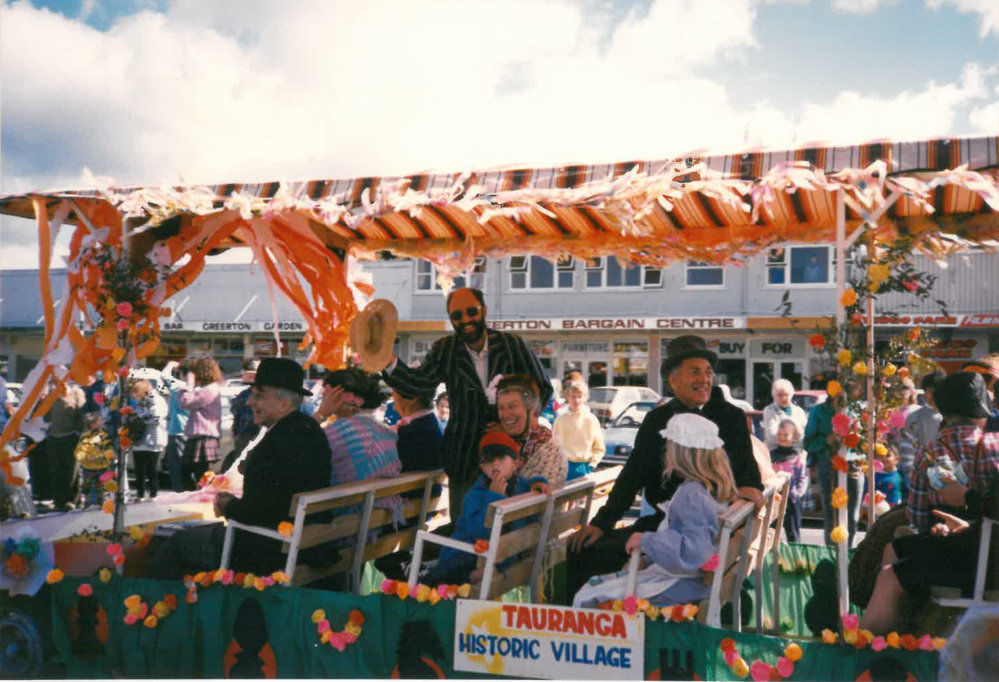 Historic Village float in parade on Cameron Road c. 1988 (c. 1988). Pae Korokī, accessed 25/03/2026, https://paekoroki.tauranga.govt.nz/nodes/view/28842