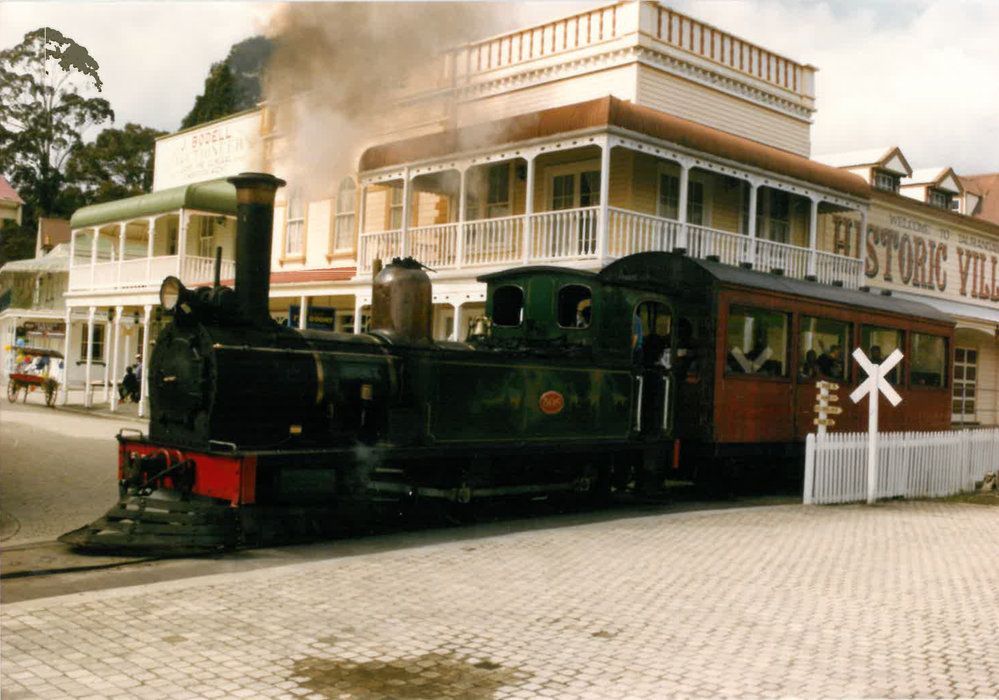 Historic Village locomotive crossing into village c. late-1990s