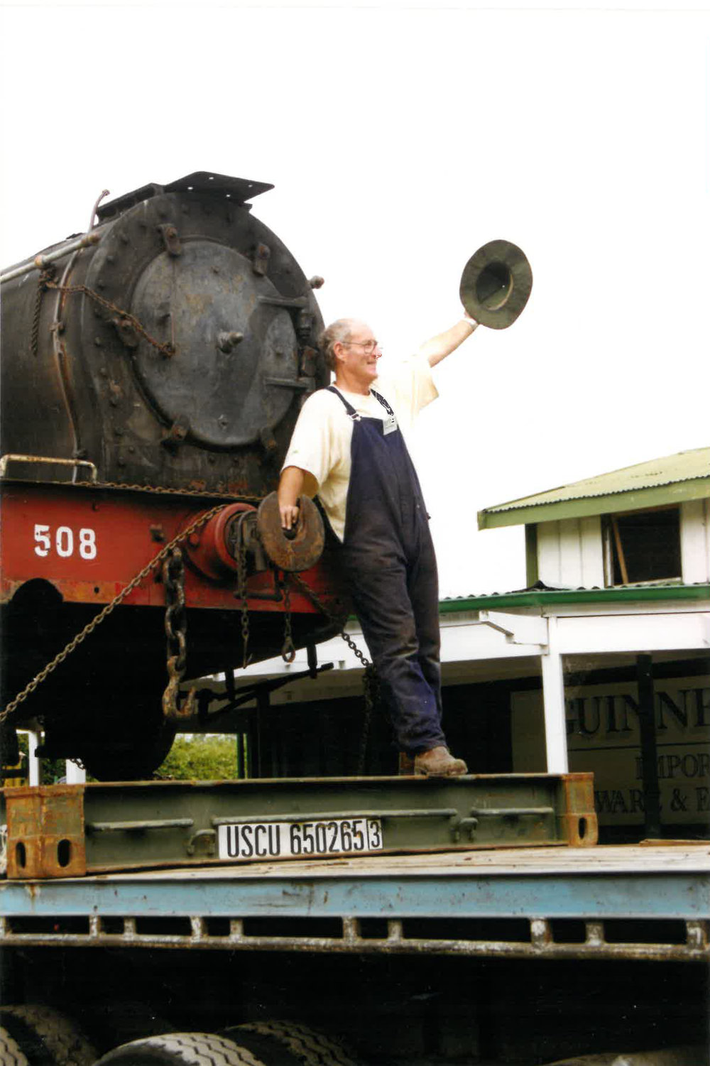 Historic Village locomotive with Shantytown staff member c. late-1990s