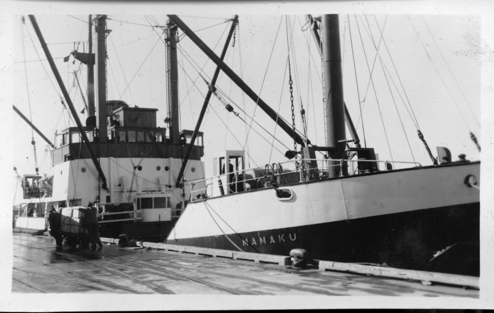 Date1940sReference NumberPhoto 14-0426DescriptionPhotograph from an album belonging to Fred Johnston who, in the later part of the Second World War, was in the pacific islands in a support role. the Mamaku in port. FormatPrint