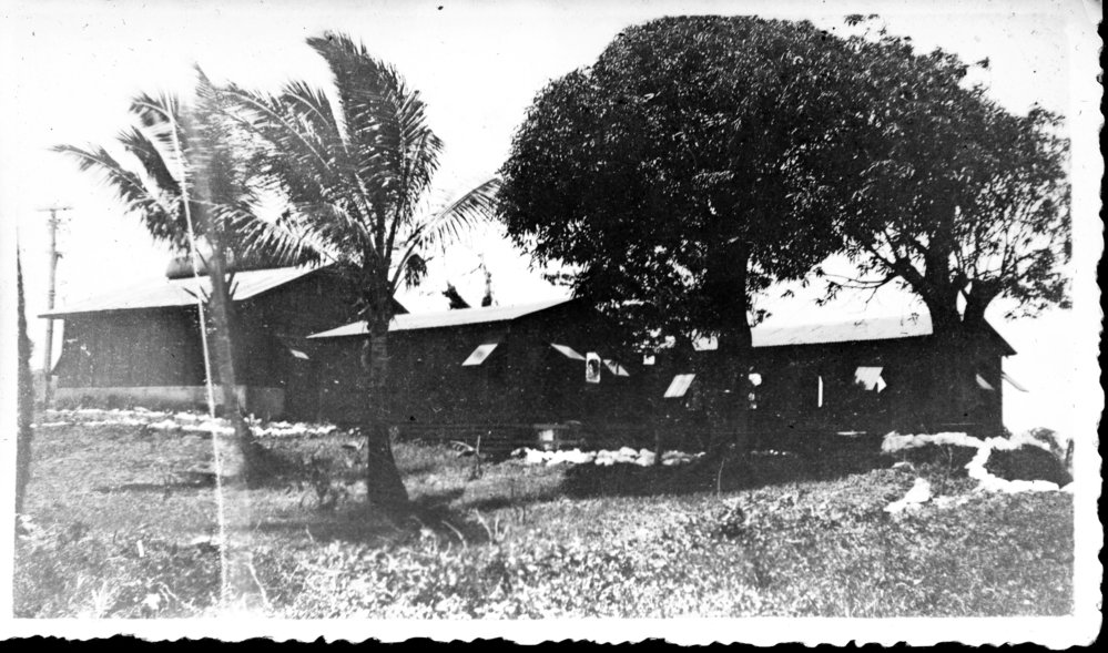 Reference NumberPhoto 14-0438DescriptionPhotograph from an album belonging to Fred Johnston who, in the later part of the Second World War, was in the pacific islands in a support role. Handwritten on reverse "Building at Lauthala Bay RNZAF camp Fiji"FormatPrint