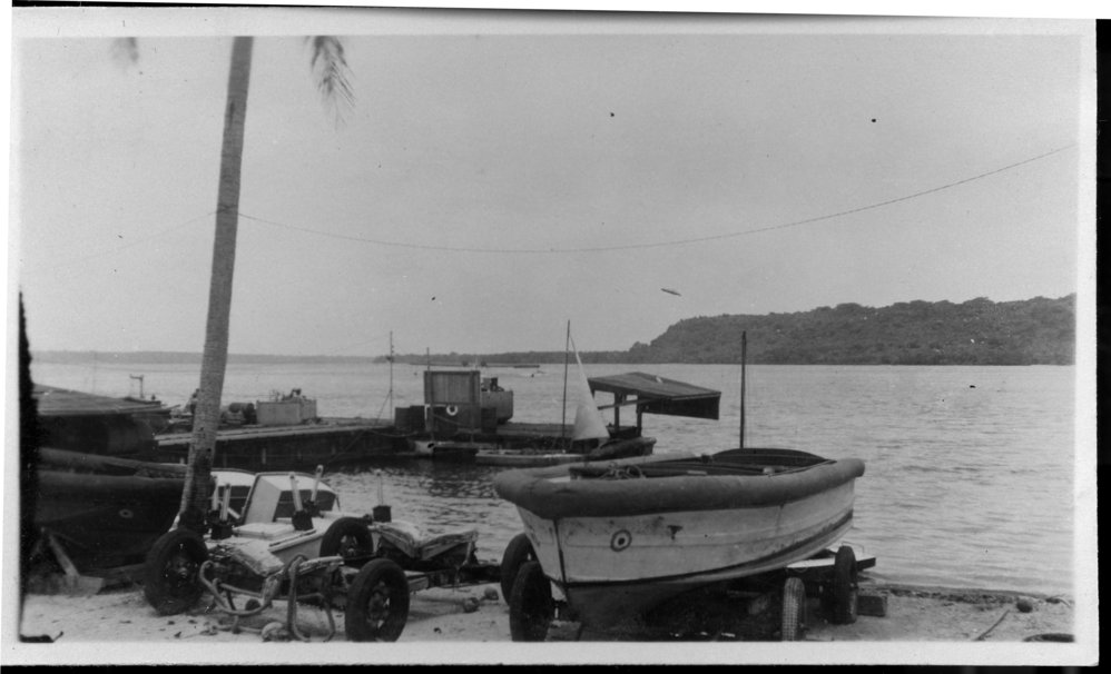 Reference NumberPhoto 14-0439DescriptionPhotograph from an album belonging to Fred Johnston who, in the later part of the Second World War, was in the pacific islands in a support role. Handwritten on reverse "Segond channel Seaplane Base. Esperito Santos"FormatPrint