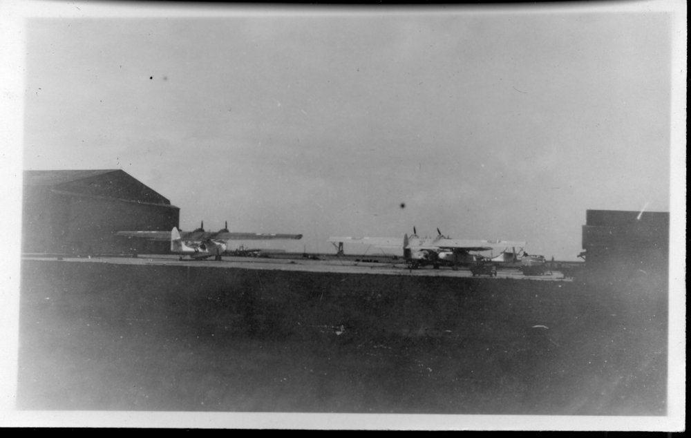 Reference NumberPhoto 14-0448DescriptionPhotograph from an album belonging to Fred Johnson who, in the later part of the Second World War, was in the pacific islands in a support role. WWII era Seaplanes on the ground at hanger. Stamped on reverse "Printed by Stinson Studios SUVA". FormatPrint