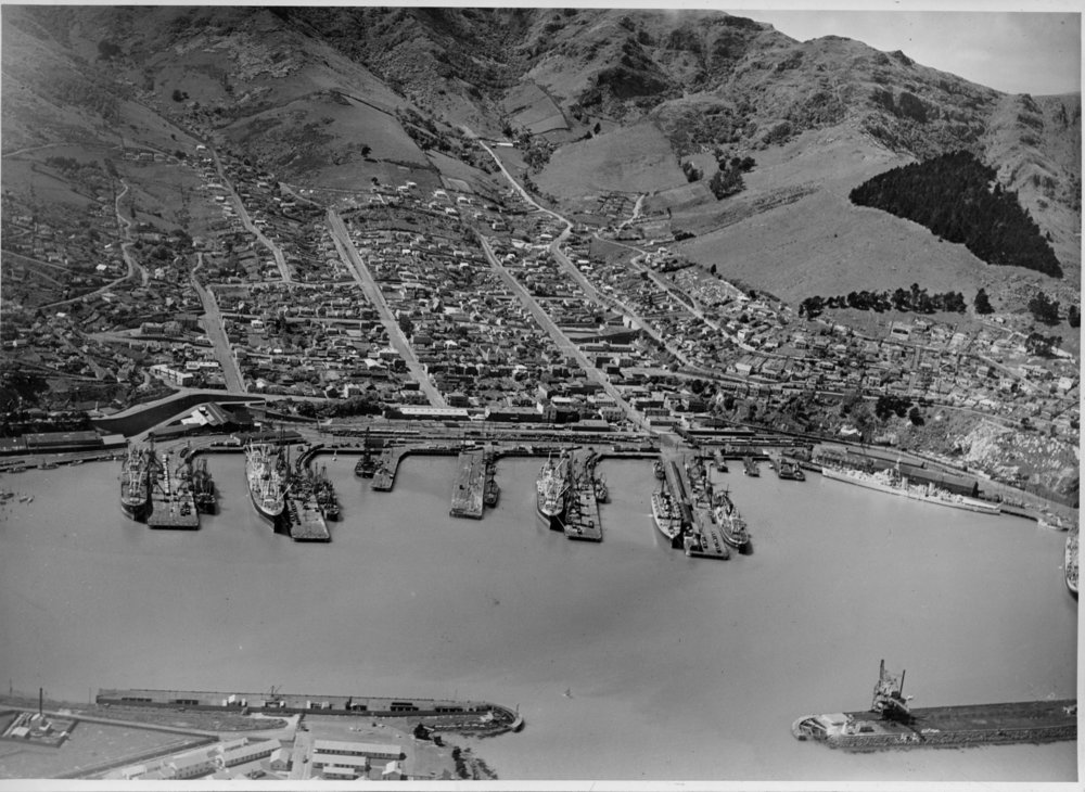 Date1940s to 1950sReference NumberPhoto 14-0468DescriptionPhotograph from an album belonging to Fred Johnson who, in the later part of the Second World War, was in the pacific islands in a support role. He worked on Aircraft engines during WWII in New Zealand and the Pacific (1945 and 1946). Stamped on reverse "W Biynly - Keith (?). Regent Theatre BLDGS. Cathedral Square. Christchurch. " Lyttelton Harbour. c. 1940s or 1950sFormatPrint
