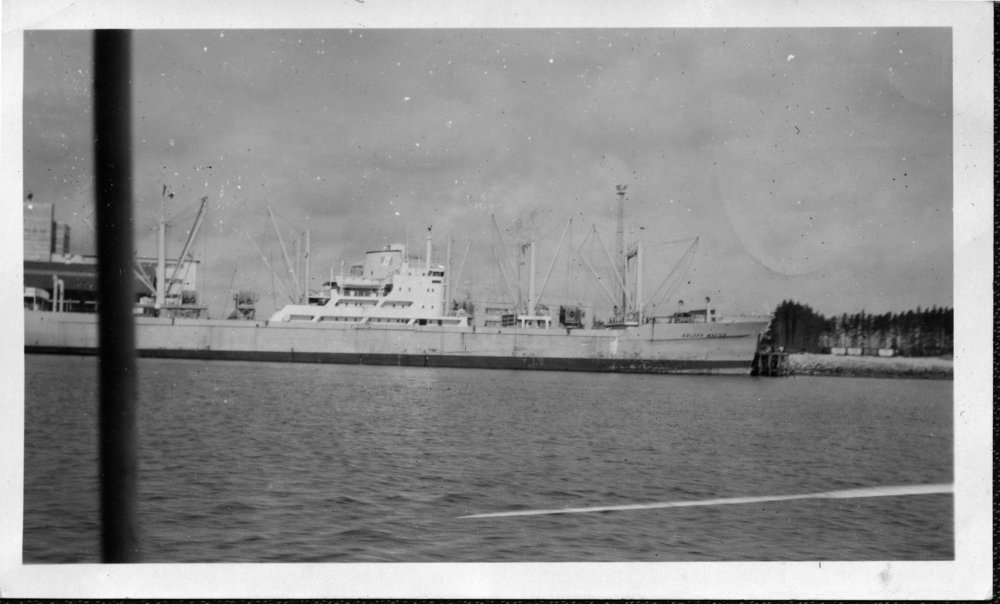 Reference NumberPhoto 14-0476DescriptionPhotograph from an album belonging to Fred Johnson who, in the later part of the Second World War, was in the pacific islands in a support role. He worked on Aircraft engines during WWII in New Zealand and the Pacific (1945 and 1946). The Golden Master in port. She was grounded while heading for Tauranga Port, 4 kilometres NW of Mōtītī Island in 1959 for 15 days (Sea Breezes Magazine November 2012). http://www. sea breezes. co. im/index. php?option=com_content&id=1010:the-grounding-of-the-qgolden-masterq&Itemid=59 FormatPrint