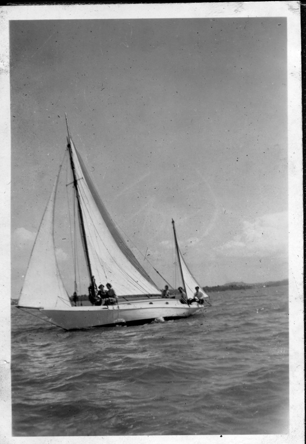 Reference NumberPhoto 14-0500DescriptionPhotograph from an album belonging to Fred Johnson who, in the later part of the Second World War, was in the pacific islands in a support role. He worked on Aircraft engines during WWII in New Zealand and the Pacific (1945 and 1946). A group our sailing. FormatPrint