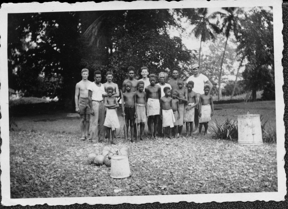 Reference NumberPhoto 14-0523DescriptionPhotograph from an album belonging to Fred Johnson who, in the later part of the Second World War, was in the pacific islands in a support role. He worked on Aircraft engines during WWII in New Zealand and the Pacific (1945 and 1946). Taken while working on Aircraft engines in the Pacific 1945 and 1946. Handwritten on reverse "Nession Village Life"FormatPrint