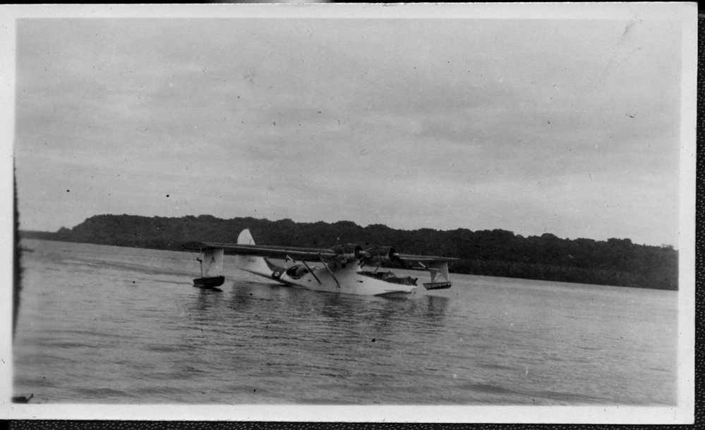 Date1945Reference NumberPhoto 14-0529DescriptionPhotograph from an album belonging to Fred Johnson who, in the later part of the Second World War, was in the pacific islands in a support role. He worked on Aircraft engines during WWII in New Zealand and the Pacific (1945 and 1946). Taken while working on Aircraft engines in Fiji 1945. Seaboat in the water. FormatPrint