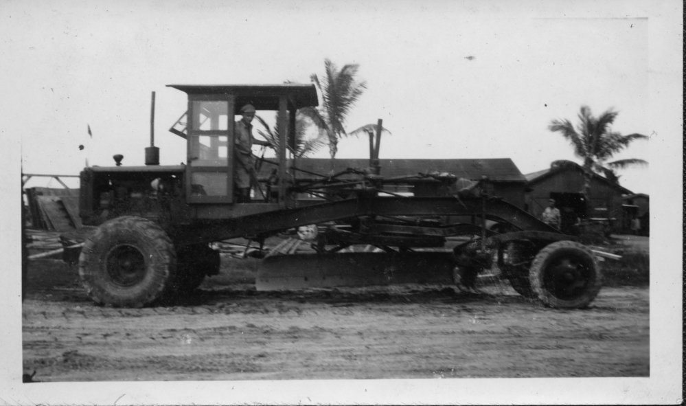 Date1945Reference NumberPhoto 14-0562DescriptionPhotograph from an album belonging to Fred Johnson who, in the later part of the Second World War, was in the pacific islands in a support role. He worked on Aircraft engines during WWII in New Zealand and the Pacific (1945 and 1946). Taken while working on Aircraft engines in Fiji 1945. Handwritten on reverse "Luthala Bay Camp. WMU Yard. Suva". FormatPrint