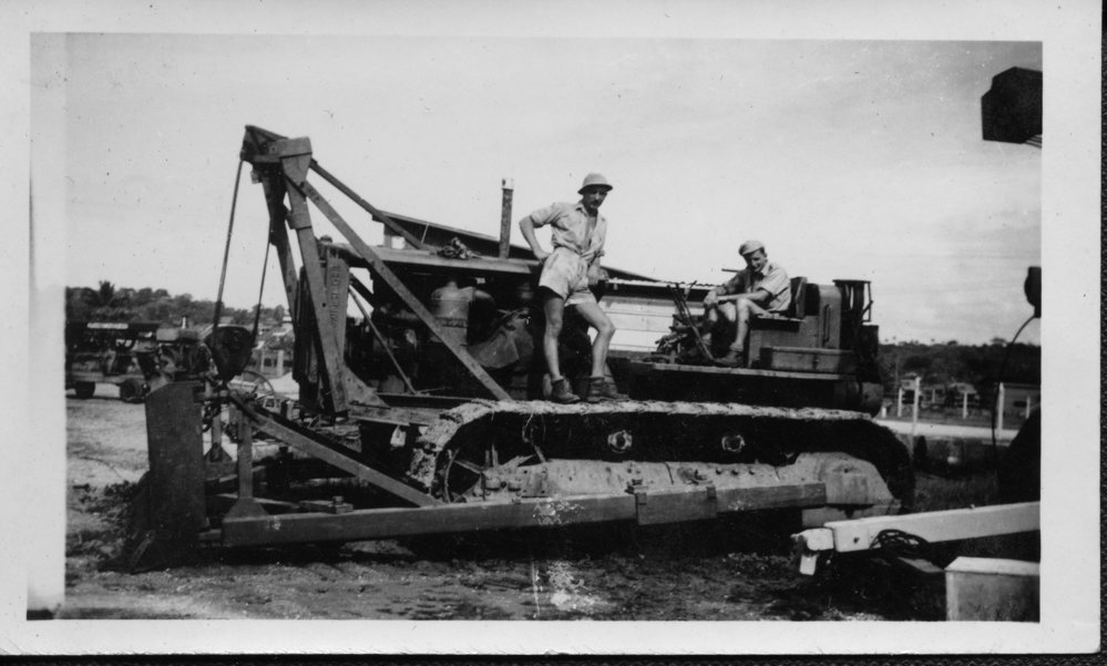 Date1945Reference NumberPhoto 14-0564DescriptionPhotograph from an album belonging to Fred Johnson who, in the later part of the Second World War, was in the pacific islands in a support role. He worked on Aircraft engines during WWII in New Zealand and the Pacific (1945 and 1946). Taken while working on Aircraft engines in Fiji 1945. Handwritten on reverse "Luthala Bay RNZAF. WMU yard". FormatPrint