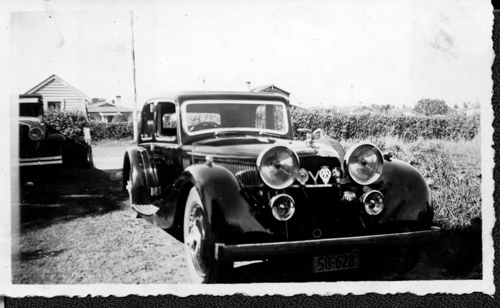 Date1938Reference NumberPhoto 14-0574DescriptionPhotograph from an album belonging to Fred Johnson who, in the later part of the Second World War, was in the pacific islands in a support role. He worked on Aircraft engines during WWII in New Zealand and the Pacific (1945 and 1946). Handwritten on reverse "Alvis Speed 20 1938. Percy Allen Te Puke". FormatPrint