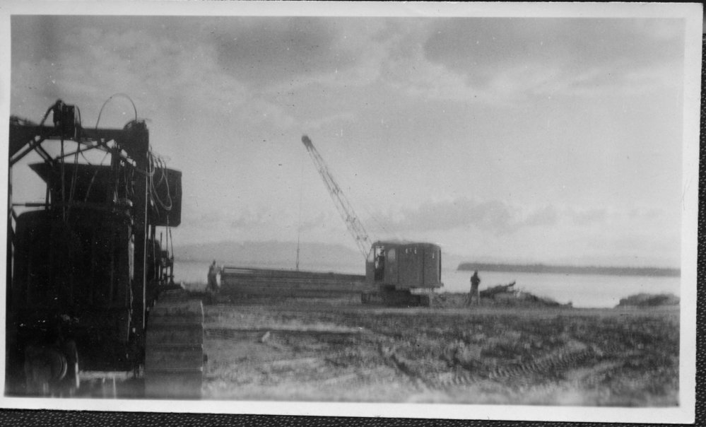 DateJune 1953Reference NumberPhoto 14-0579DescriptionPhotograph from an album belonging to Fred Johnson who, in the later part of the Second World War, was in the pacific islands in a support role. He worked on Aircraft engines during WWII in New Zealand and the Pacific (1945 and 1946). Construction at the Mount Wharf began in June of 1953. FormatPrint