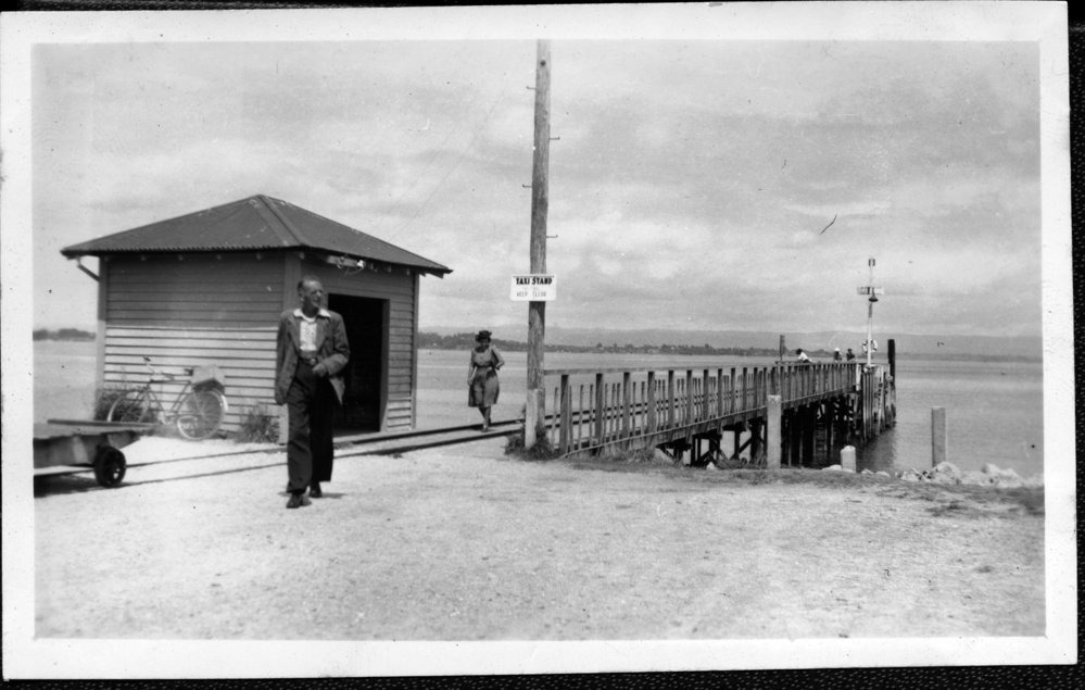 Date1940s to 1950sReference NumberPhoto 14-0584DescriptionPhotograph from an album belonging to Fred Johnson who, in the later part of the Second World War, was in the pacific islands in a support role. He worked on Aircraft engines during WWII in New Zealand and the Pacific (1945 and 1946). Handwritten on reverse "Salisbury wharf. Mum. Dad. " c. 1940s or 1950s. FormatPrint