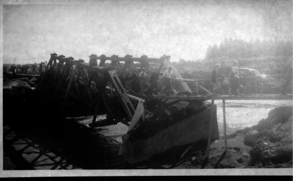 DateDecember 1953Reference NumberPhoto 15-065DescriptionPhotograph from an album belonging to Fred Johnson who, in the later part of the Second World War, was in the pacific islands in a support role. He worked on Aircraft engines during WWII in New Zealand and the Pacific (1945 and 1946). Handwritten on reverse "Tangiwai Rail Disaster. Xmas 1953". FormatPrint