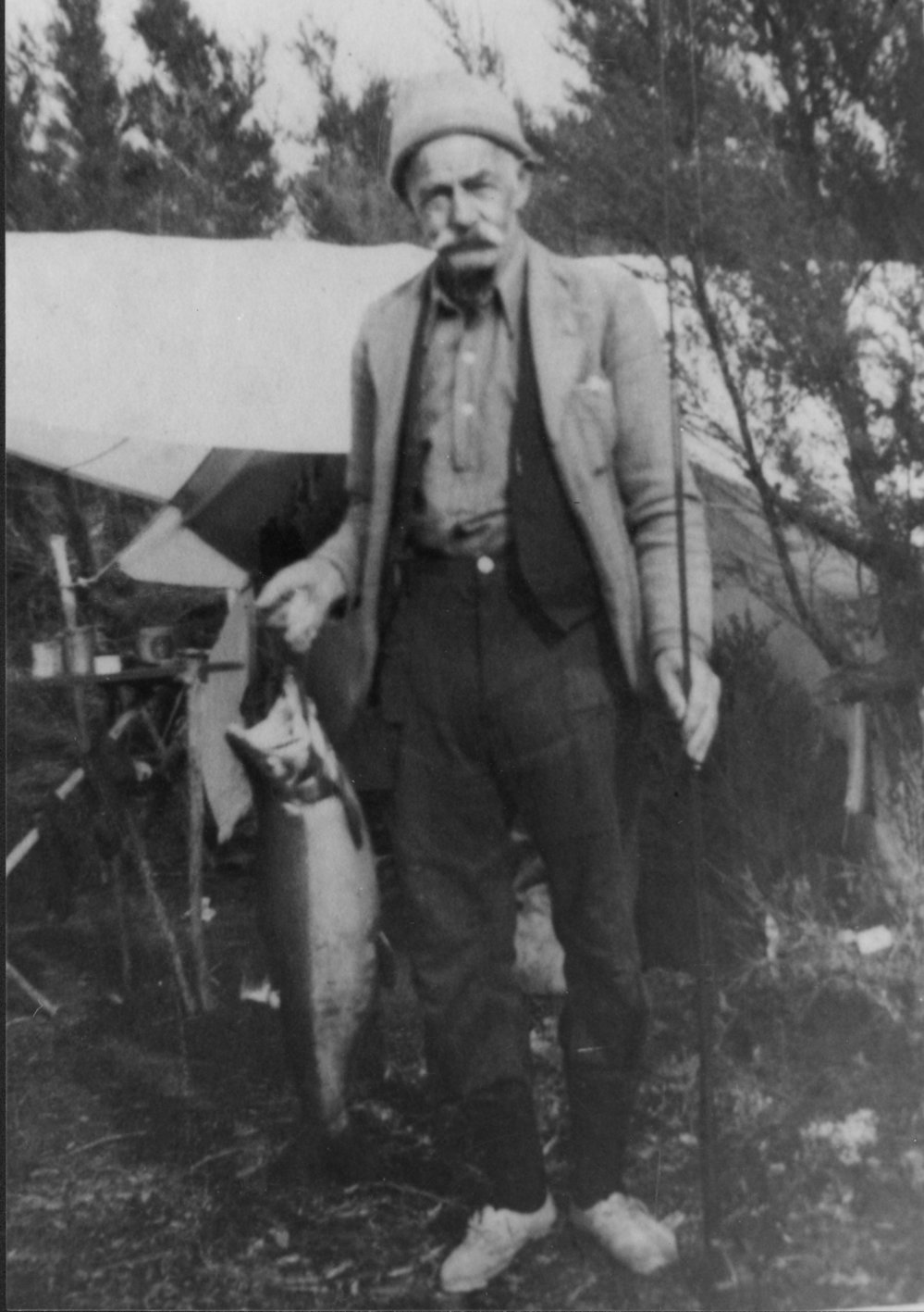Date1920sReference NumberPhoto 04-149DescriptionArthur Thistlethwaite's father as an old man, with large fish, c1920s FormatPrintPhysical Descriptionblack and white print