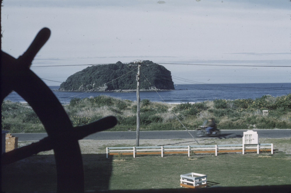 Date1959Reference NumberPhoto 04-292DescriptionView from Flat No. 3, New Anchorage Motel, Mount Maunganui, 1959, showing MotuotauFormatPrintPhysical Descriptionslide