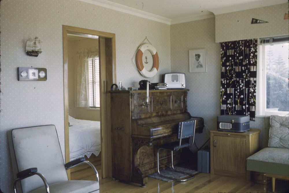 Date1959Reference NumberPhoto 04-294DescriptionInterior of Flat No.3, New Anchorage Motel, Mount Maunganui, 1959FormatPrintPhysical Descriptionslide