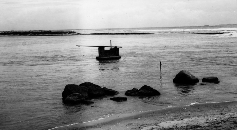 Date1976Reference NumberPhoto 04-319DescriptionForeshore at Maketū, showing anchor stone and mooring rock. 1976FormatPrintPhysical Descriptionblack and white print