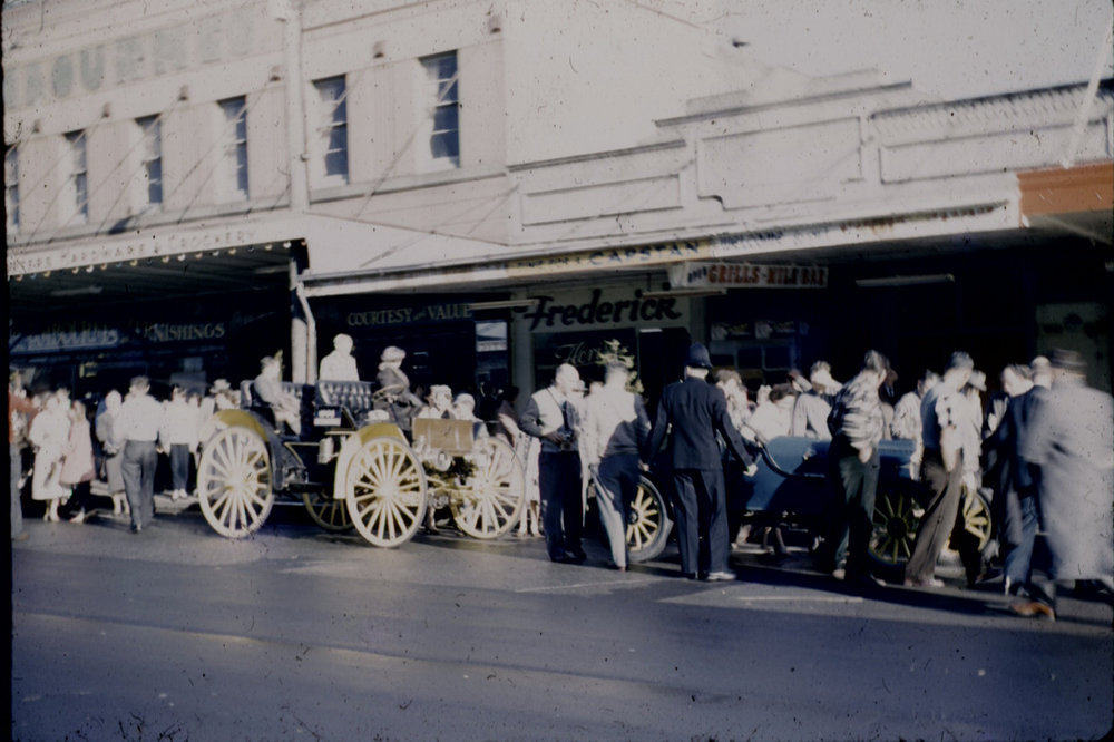 Date1961-1970Reference NumberPhoto 04-406DescriptionOrange Festival, c 1961-1970: procession on Willow Street, TaurangaFormatPositivePhysical DescriptionSlide