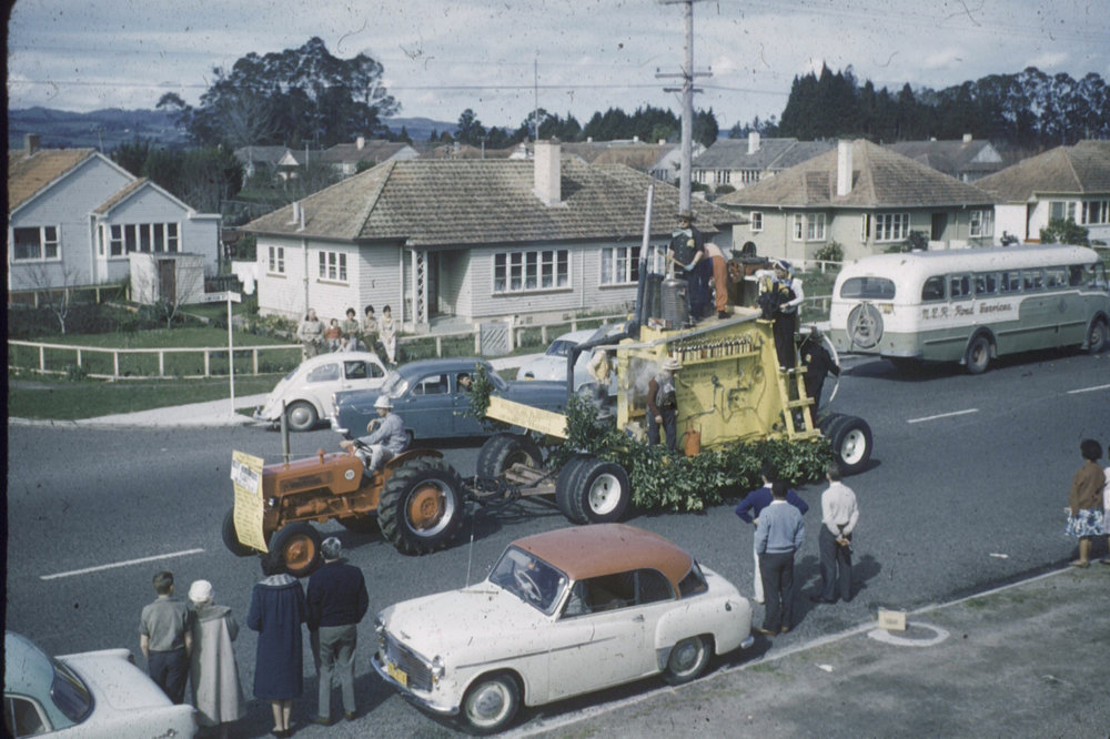 Date1961-1970Reference NumberPhoto 04-408DescriptionOrange Festival 1961-1970: float passing along Cameron Road, Tauranga. Floats photographed at the same time appear in this 1962 home video footage by Norman Blackie. FormatPrintPhysical Descriptionslide