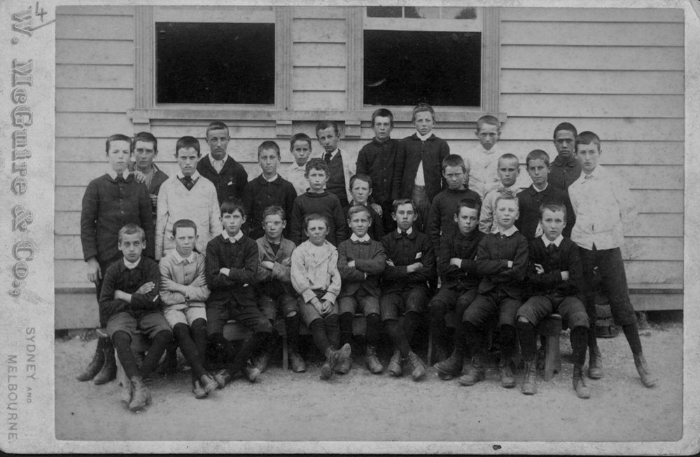 Date1890sReference NumberPhoto 04-501DescriptionTauranga School boys, c1890s.Front row l to r: 1. Eustace de Bourbel 2. Pat Mannix 3. ? 4. G. King 5. Cecil Carter 6. Kirk 7. Bob McNaughton 8. Joe Hale 9. ? 10. Bob GilmoreMiddle row: 1. J. Clark 2. W. Gain 3. ? 4. Toff Culleen 5. W. Gilmore 6. T. Cook 7. Fort de Fort 8. ? 9. Harold de BourbelBack row: 1. ? 2. D. Jordan 3. Joe Salt 4. ? 5. M. Hale 6. Cyril Jordan 7. Chas Hardie 8. G. HallFormatPrintPhysical Descriptioncarte de visitePhotographer/CreatorMcGuire, William, c. 1862-1907