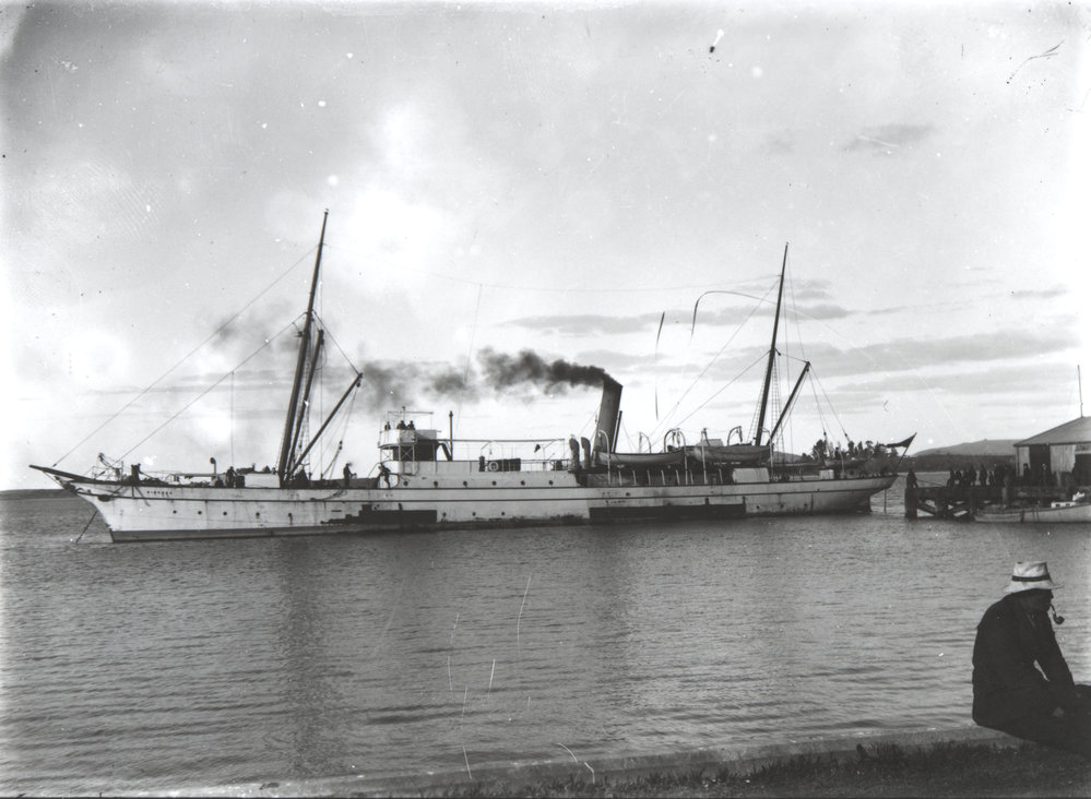 Date1890sReference NumberPhoto 04-573DescriptionGovernment steam ship "Hinemoa", at Tauranga, c1890sFormatPrintPhysical Descriptionblack and white print