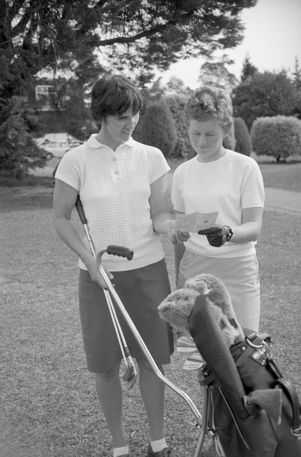 Date03 May 1969Reference NumberPhoto pn-2105DescriptionLady golfers: Peg Copestake & Elizabeth Proctor. Photograph taken for magazine number 83 of the Bay of Plenty Photo News, 3 May 1969, p.17FormatNegative