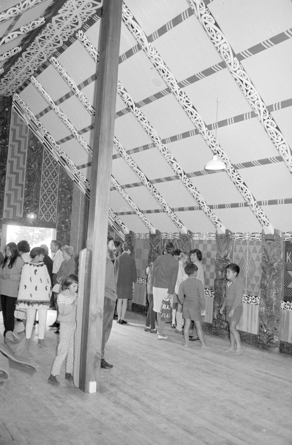 Opening of new wharenui at Hangarau marae: interior of Hangarau (31 May 1969). Pae Korokī, accessed 08/04/2026, https://paekoroki.tauranga.govt.nz/nodes/view/29754