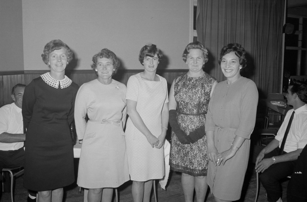 Date28 June 1969Reference NumberPhoto pn-2624DescriptionKatikati revellers: Shirley & Barbara Hart, Ngaire Chase, Fay Hunter & Jane Bidois. Photograph taken for magazine number 85 of the Bay of Plenty Photo News, 28 June 1969, p.28FormatNegative