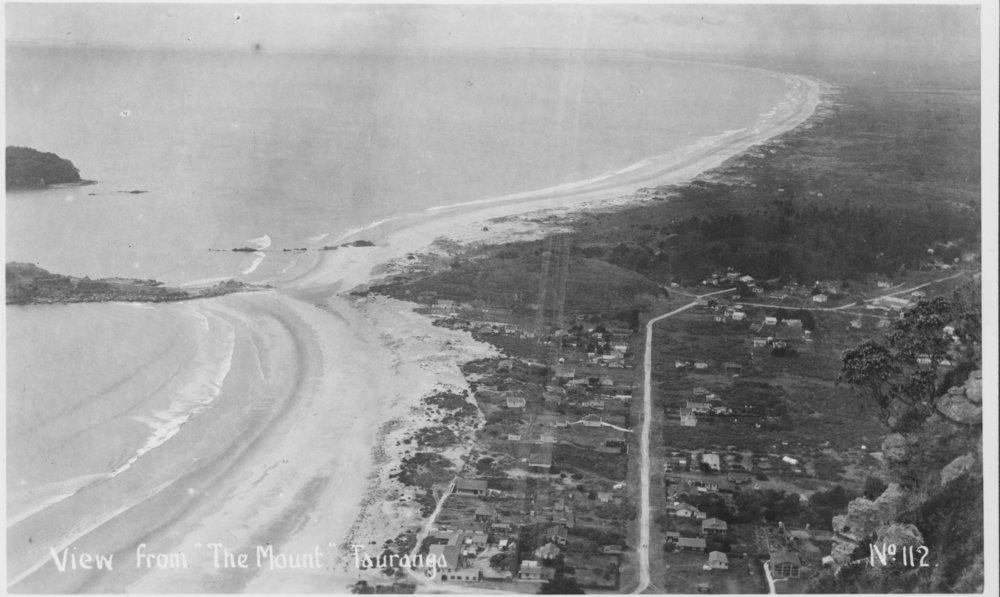 Reference NumberPhoto 98-014DescriptionOriginally described as follows: View from Mount Maunganui looking towards Mount Drury 1930sFormatPrintPhysical Descriptionblack and white postcardSource of AcquisitionIan McCutcheon