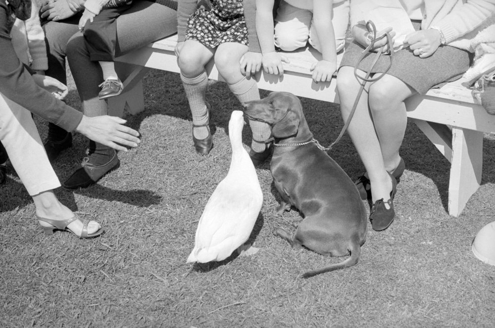 Date18 October 1969Reference NumberPhoto pn-4741DescriptionPets on parade: duck & dog. Photograph taken for magazine number 89 of the Bay of Plenty Photo News, 18 October 1969, p.18.FormatNegative